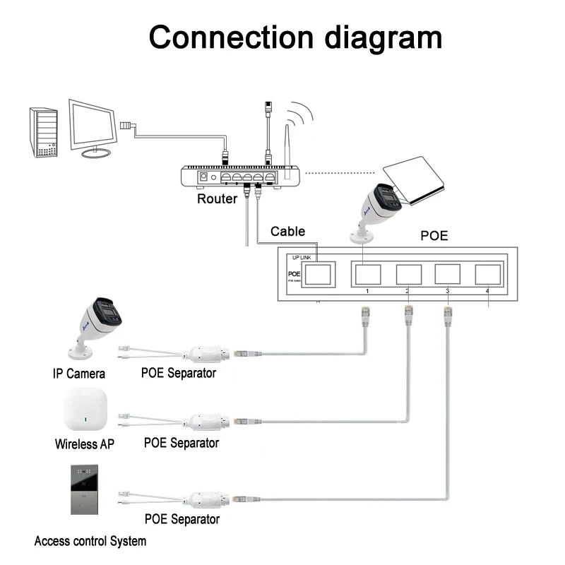 – Може да разделя захранването и данните от мрежовия кабел – подходящ за устройства, които не поддържат POE захранване.