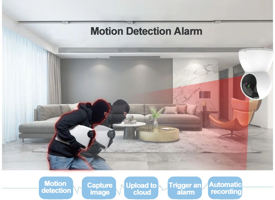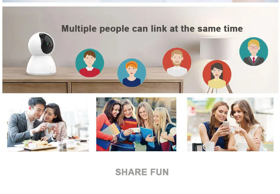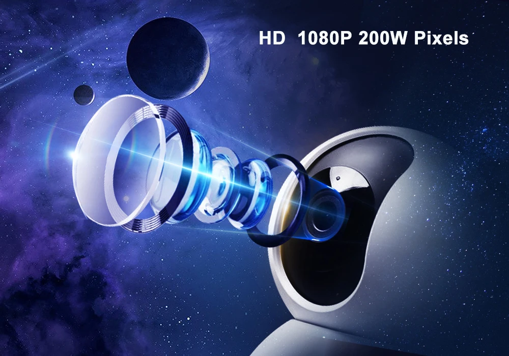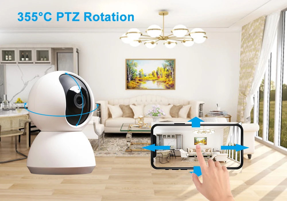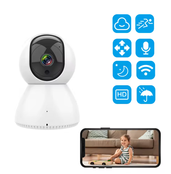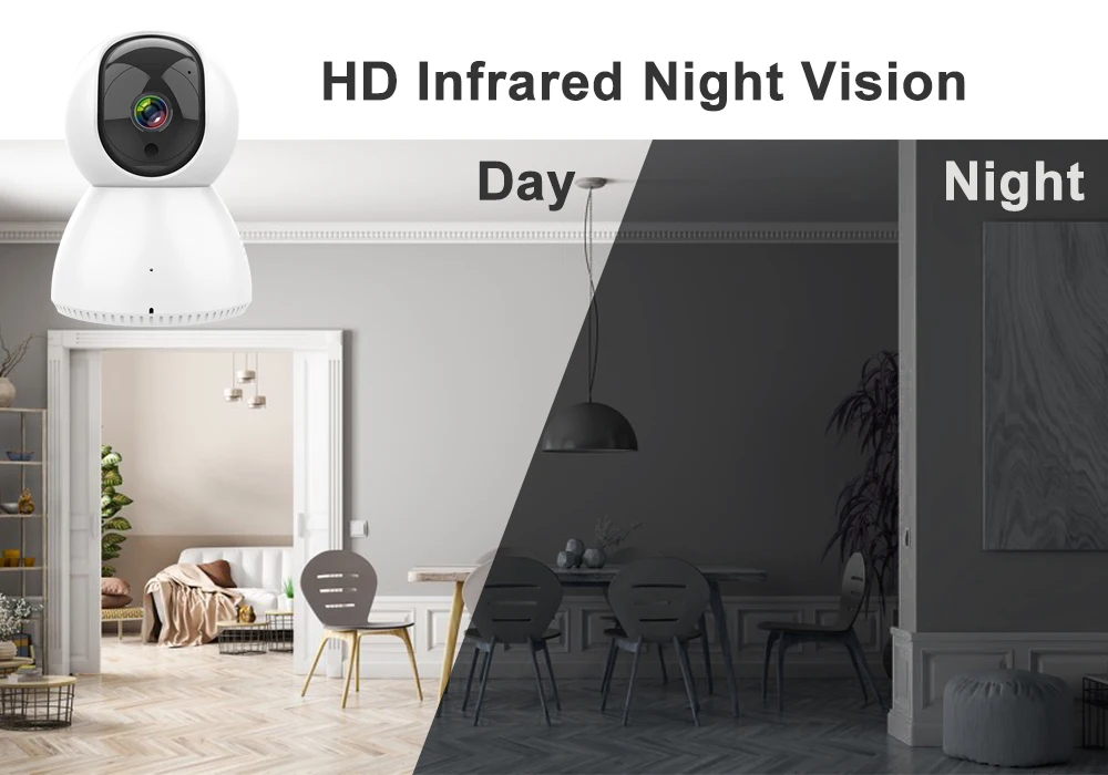 IP камерата с 1080P Full HD резолюция осигурява кристално чисто и детайлно изображение, което позволява да виждате всяка подробност с високо качество. Благодарение на функцията Pan/Tilt, камерата предлага 355° хоризонтално и 120° вертикално въртене, осигуряващо пълно 360° покритие и широко зрително поле чрез професионален 135° широкоъгълен обектив с двупосочно управление. С вграденото двупосочно аудио можете да поставите камерата навсякъде в дома си и да наблюдавате случващото се в реално време, като същевременно общувате дистанционно със семейството си чрез мобилното приложение. Функцията автоматично проследяване на движение изпраща незабавни известия към телефона при засичане на активност. Инфрачервеното нощно виждане позволява ясно и детайлно наблюдение дори при пълна тъмнина, благодарение на мощните IR LED диоди и вградения CMOS сензор, който осигурява 1080P картина без шум. Камерата поддържа споделен достъп за множество потребители, така че лесно можете да наблюдавате дома си заедно със семейството си.